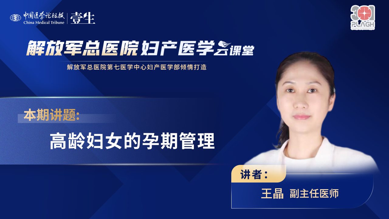 中国医学论坛报壹生妇产学院特邀解放军总医院第七医学中心妇产医学部专家团队,开设《解放军总医院妇产医学云课堂》系列专栏,每期选取妇产领域临床热点、难点话题,系统讲解妇产科疾病的诊治,梳理临床思维,规范诊疗行为。本周主题:高龄妇女的孕期管理讲者:王晶 副主任医师解放军总医院第七医学中心妇产医学部