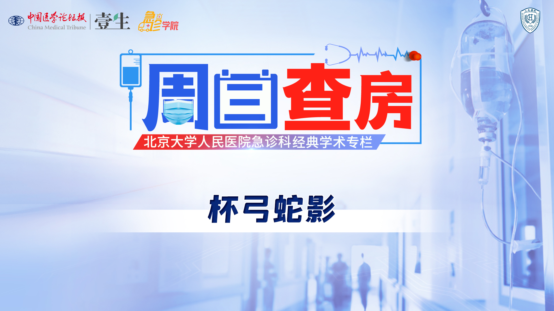 栏目介绍北京大学人民医院急诊科经典学术活动《周三查房》,自2020年11月起入驻中国医学论坛报·壹生急诊学院,经典病例结合急诊科核心知识点讲解,全部免费开放,供临床同道交流学习。更多内容,请安装壹生App,关注“急诊”频道。课程信息讲题:杯弓蛇影讲者:郑晓晓 医生讨论专家:杜昌,曹宝平等上线时间:3月20日(周五)温馨提示:微信搜索“壹生急诊学院”,关注后免费获得上课提醒,精彩内容不错过。