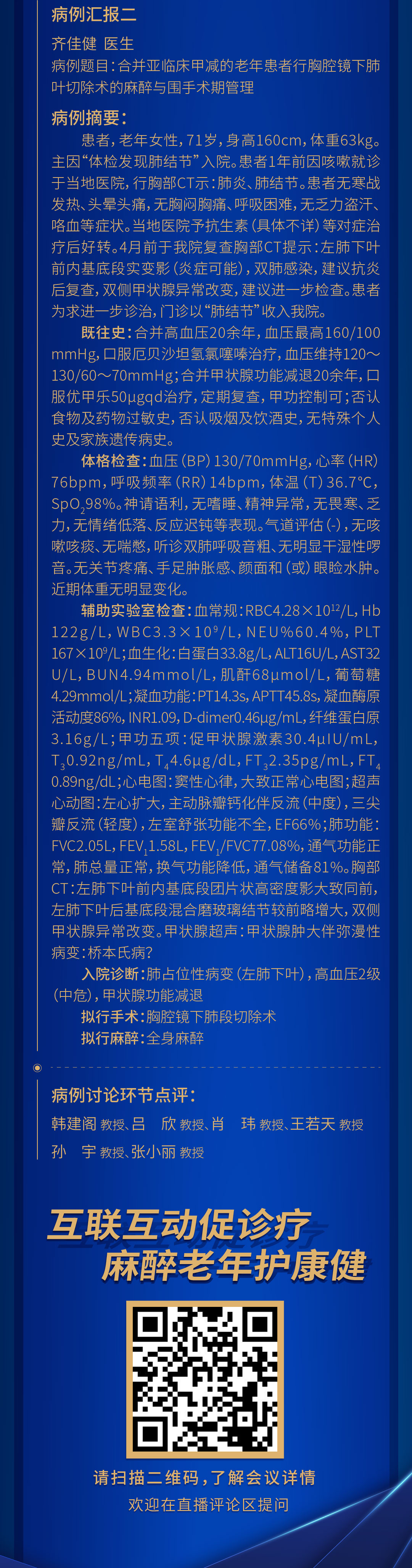 壹生直播老年麻醉与围手术期管理病例云查房(第92期)