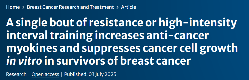 2025年7月,国际期刊《乳腺癌研究和治疗》发表的一项新研究指出:做一次抗阻运动或高强度间歇训练,就能激活身体的“抗癌武器”!
