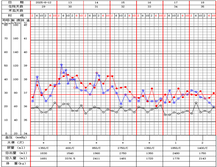 8 月 8 日:经上述治疗后患者体温稳定、炎症指标进行性下降、休克纠正、生命征较前稳定,拔除血透鞘管。