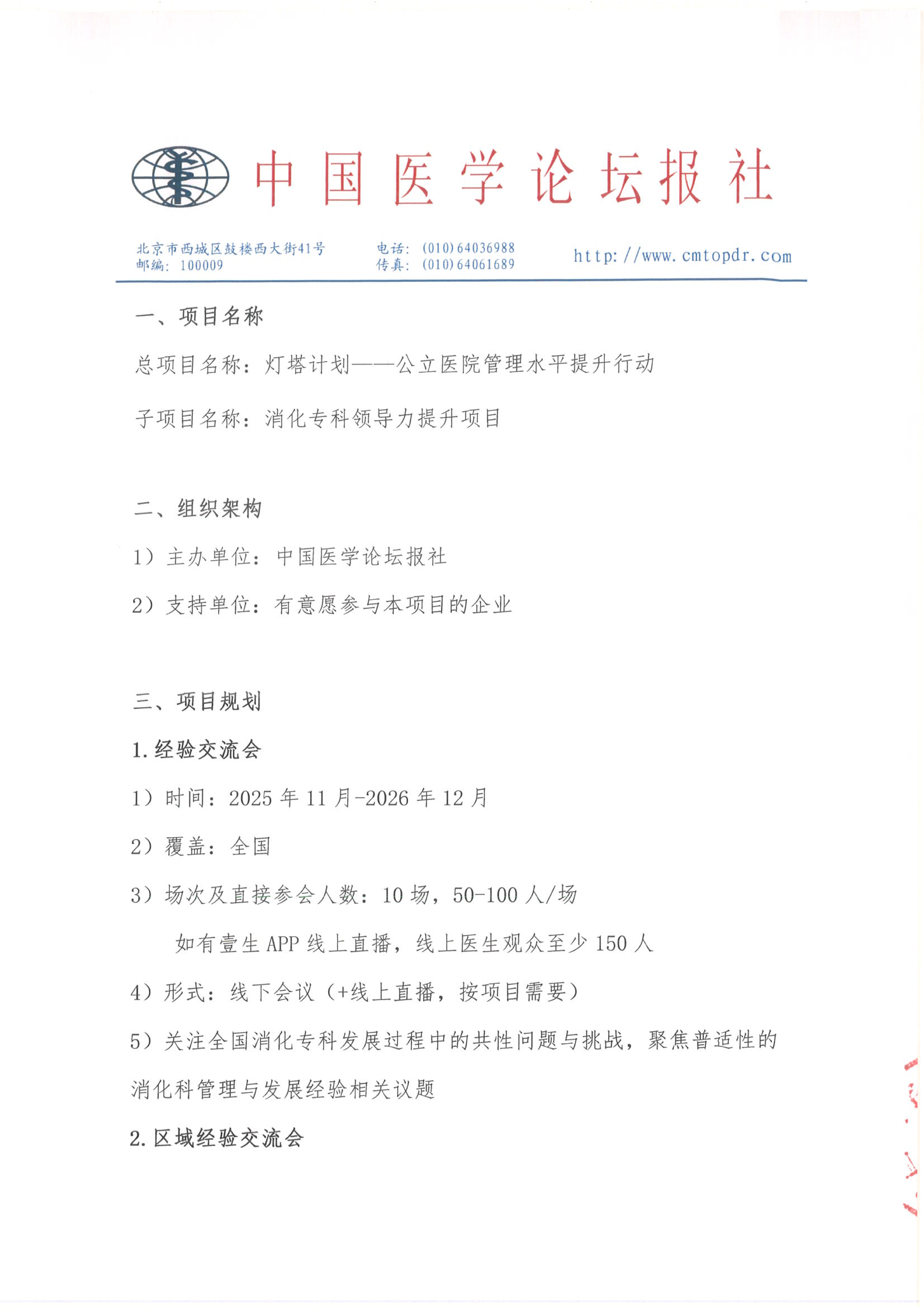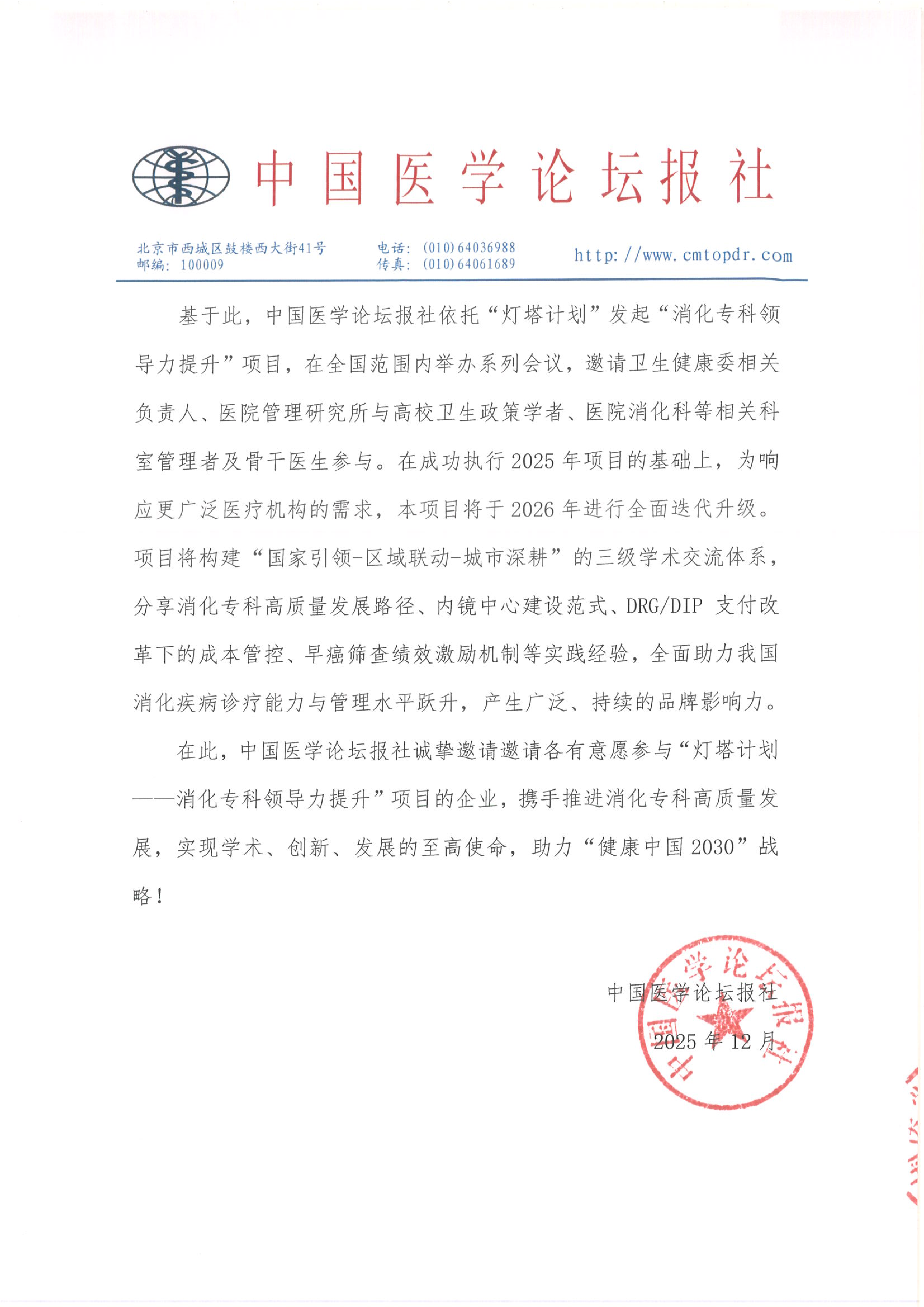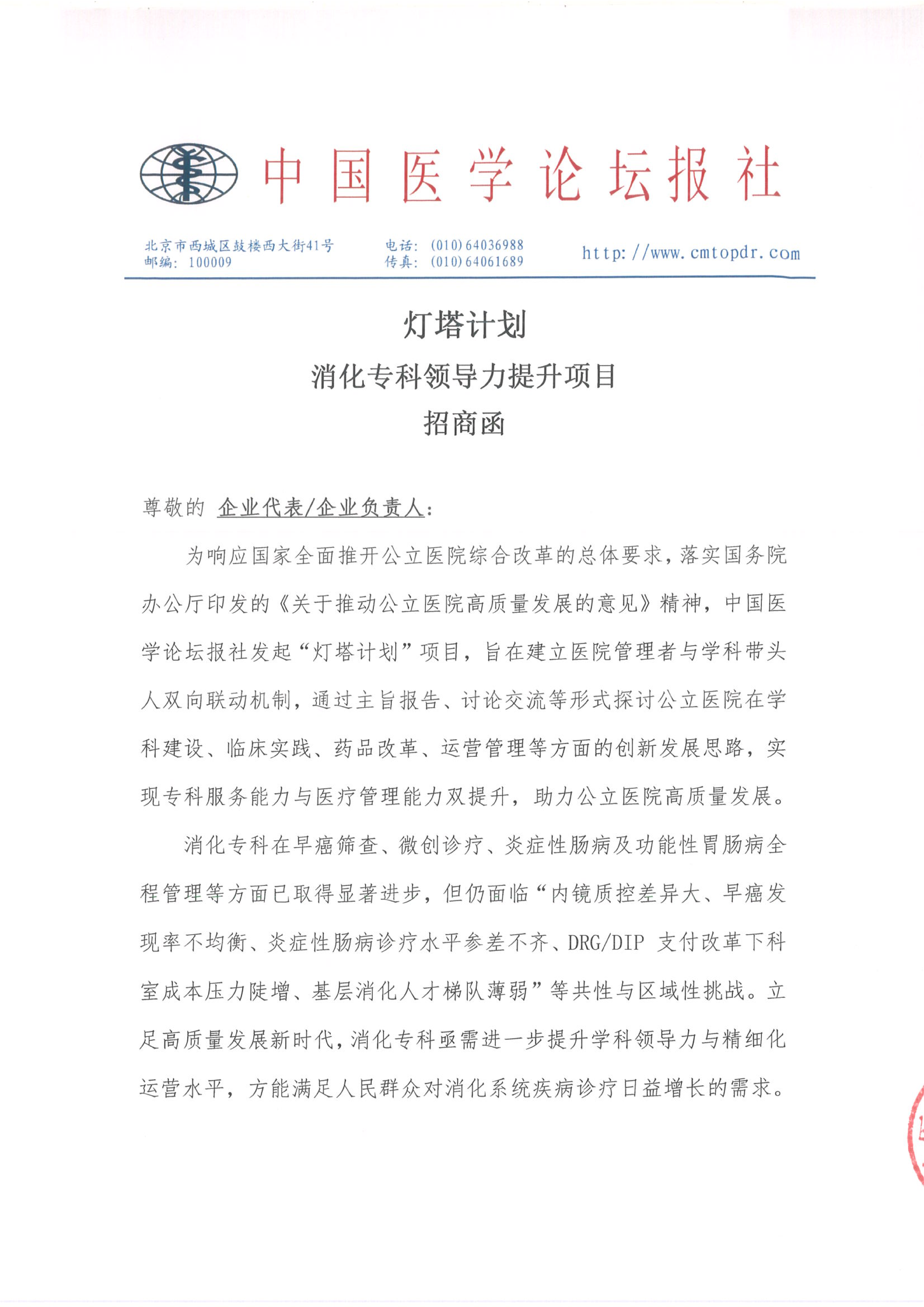 【招商函】灯塔计划·消化专科领导力提升项目