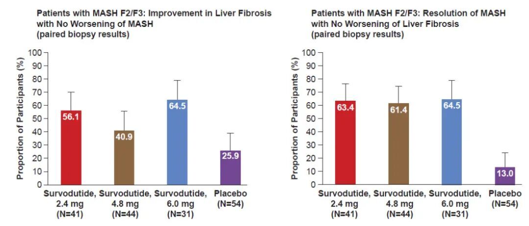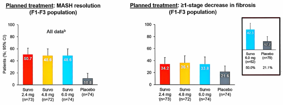 图5. Survodutide治疗MASH伴纤维化患者48周的结果分析(图引自讲者摘要或幻灯)