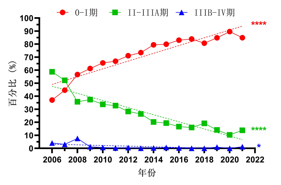 肺癌是我国发病率和死亡率均居首位的恶性肿瘤,给社会带来沉重的疾病负担。外科手术是根治早期肺癌最主要的手段,患者的长期生存率远高于晚期患者。因此,洞察可手术肺癌患者群体的特征变化,相当于把握了肺癌防控的“前沿阵地”,能最敏锐地反映出发病趋势、筛查效果和临床诊治水平的变迁。
