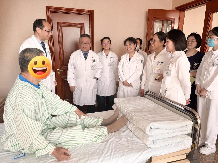 在治疗过程中,王大爷也展现出了超乎常人的坚强和毅力。尽管治疗带来的不适让他痛苦不堪,但他从未抱怨过一句,总是积极配合医护人员的治疗。一次半夜他睡不着坐在走廊掉眼泪,值班护士就搬个椅子陪着他:“您不是一个人在扛,我们都陪着您呢。”护士们也及时疏导家属因患者病情产生的焦虑情绪,指导家属在日常陪伴中多给予王大爷鼓励和肯定,避免过度关注肿块引发他二次心理压力。同时,教会家属用温和的沟通、贴心的陪伴成为王大爷康复路上的坚实支撑。