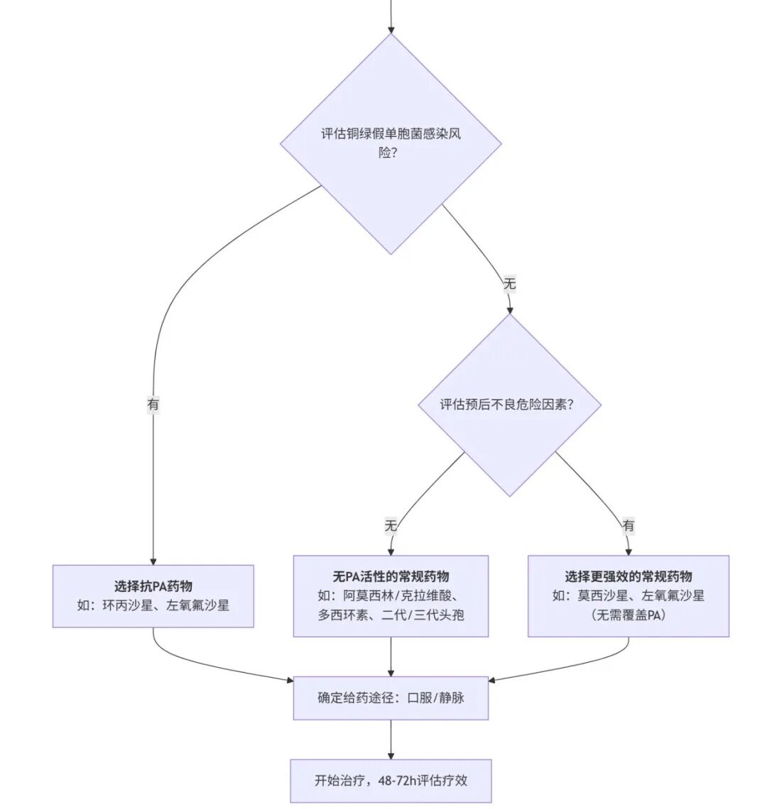 选择何种抗菌药物不是随意的,需要根据患者是否存在 “预后不良危险因素” 和 “铜绿假单胞菌感染危险因素” 进行分层。