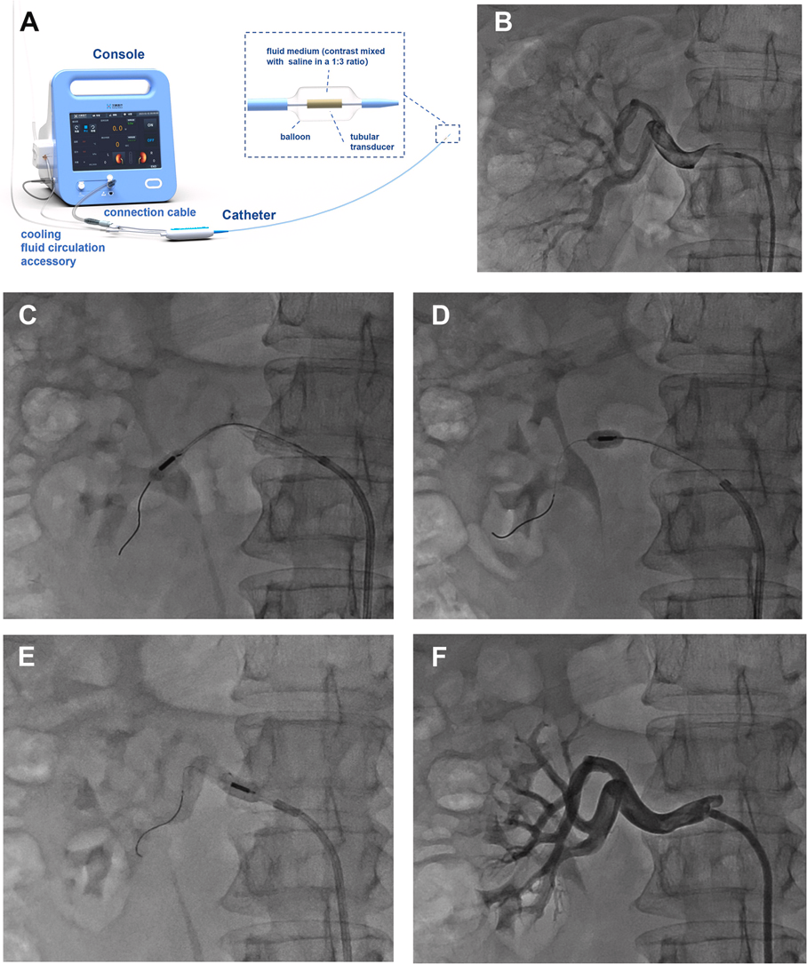 本研究采用中国自主研发的HawkSonic环形超声系统,通过360°环形超声能量靶向消融主肾动脉及一级分支血管(覆盖更全面的神经调控区域),旨在实现更精准的神经消融。