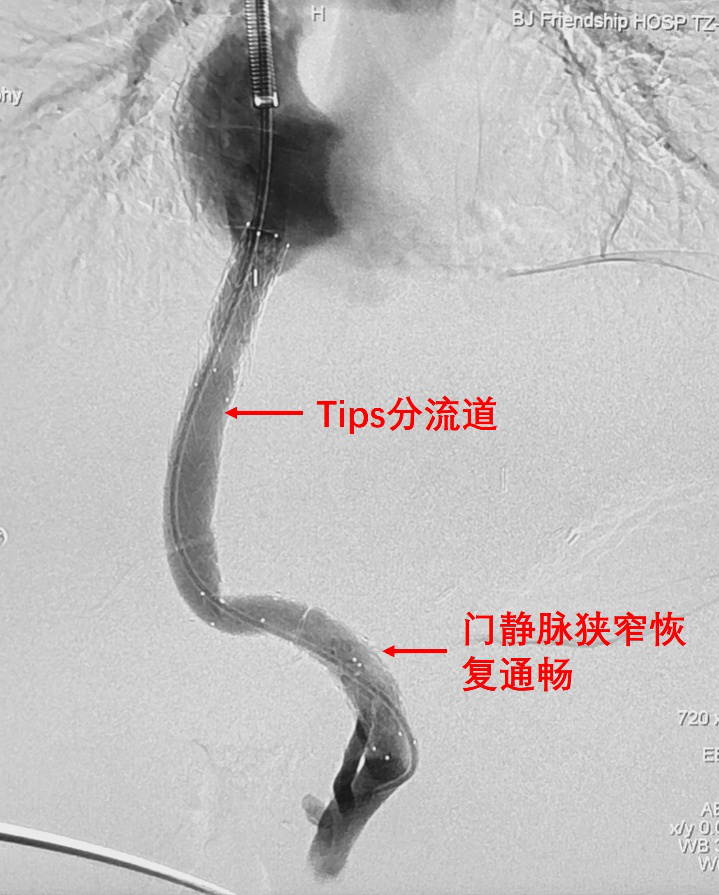 图6成功建立门静脉---肝静脉分流道,门静脉恢复通畅。