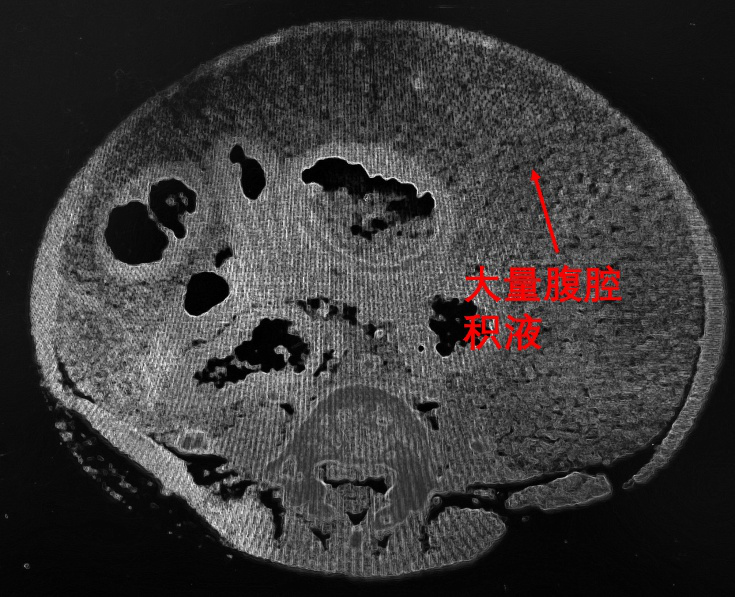 图3.术前CT,患儿大量腹腔积液