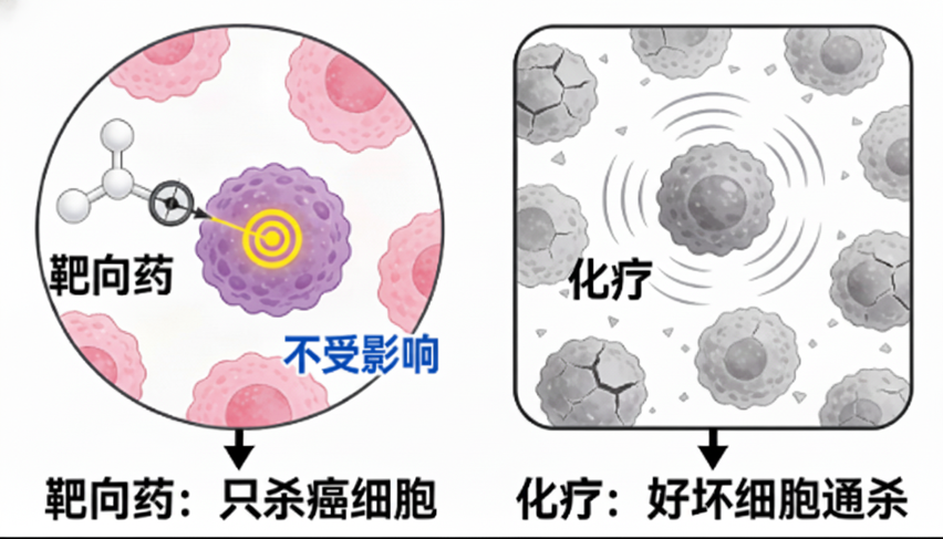 精准的打击方式,可以更好地保护正常细胞,副作用更少。