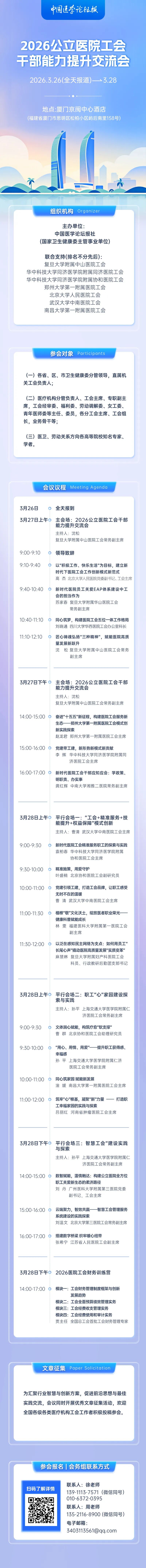 3月厦门,中国医学论坛报社2026年公立医院工会干部能力提升交流会,欢迎您!