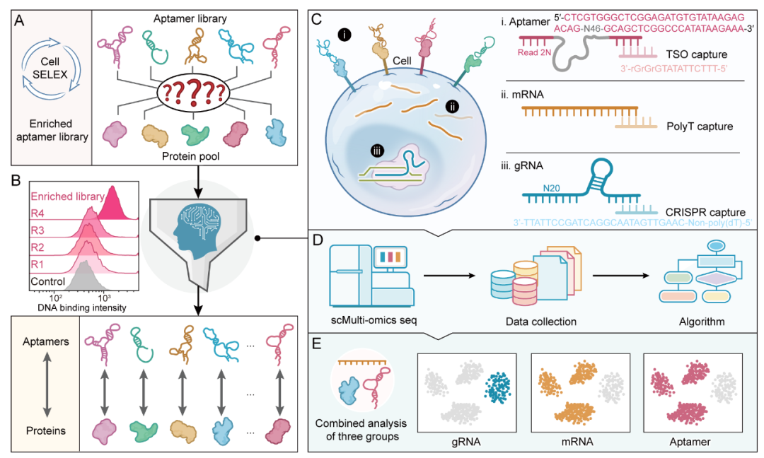 利用SPARK-seq,研究团队在单次实验中深度分析了8000多个单细胞,从5000多条序列中精准锁定了8种肿瘤关键膜蛋白的特异性探针。该技术实现了即使是表面丰度相差上百倍的极低丰度靶点,也能被同时识别。并且首次实现了在天然细胞环境中,通过基因扰动直接建立适体与靶点的“因果关系”,有效克服了传统实验中因膜蛋白构象失真导致靶标鉴定难的问题。