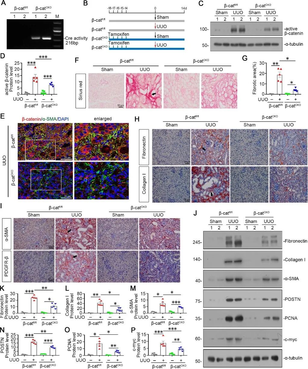 图6 成纤维细胞中敲除β-catenin可预防肾纤维化