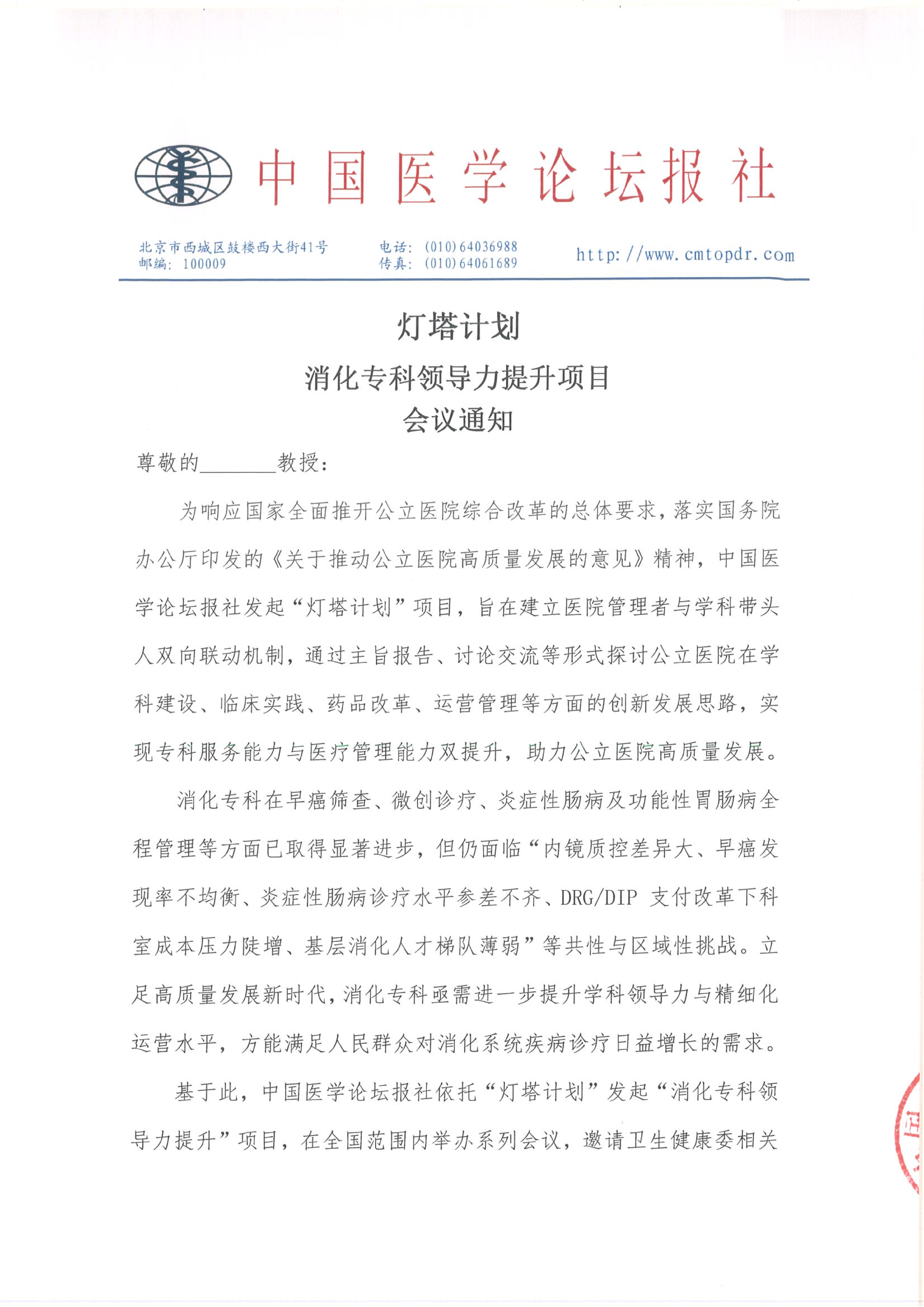 【会议通知】灯塔计划--消化专科领导力提升项目 3.21东莞