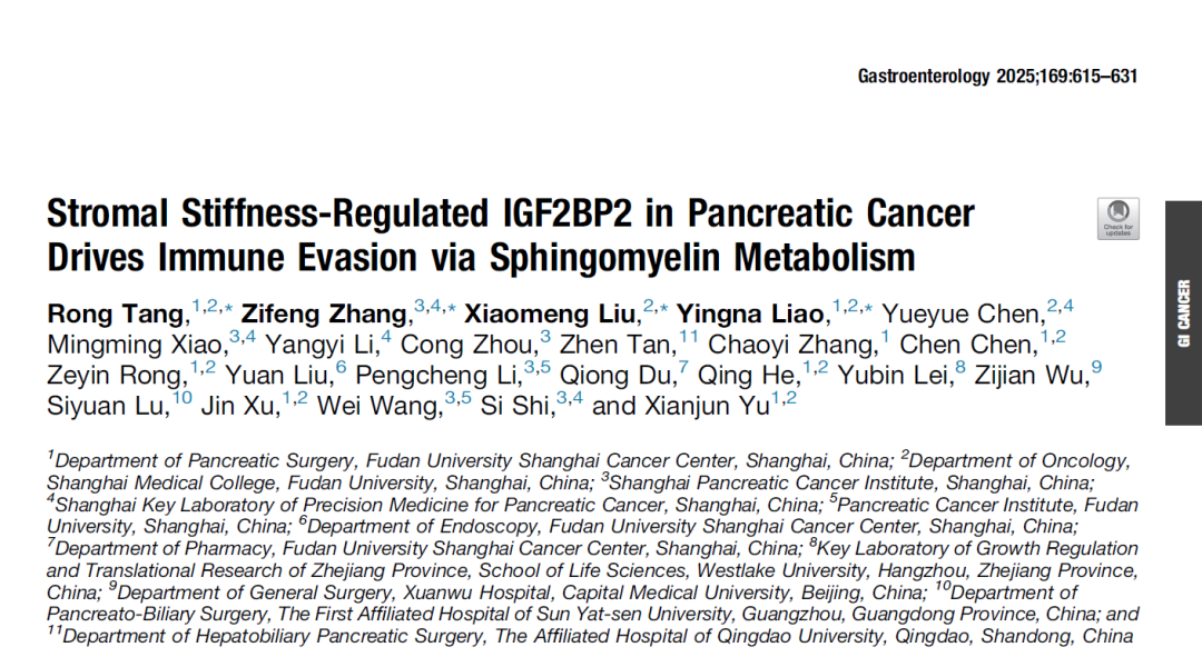 肿瘤基质硬度调控的IGF2BP2通过鞘磷脂代谢驱动胰腺癌免疫逃逸