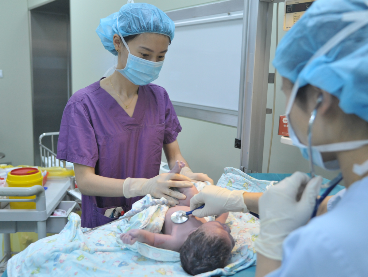 (刚出生的罹患心脏出生缺陷在产房内行相关检查后,由儿中心小儿心脏科团队“无缝接力”转运治疗)