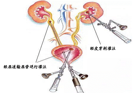 2)经尿道-肾盂逆行插管灌注,适用于全尿路感染;