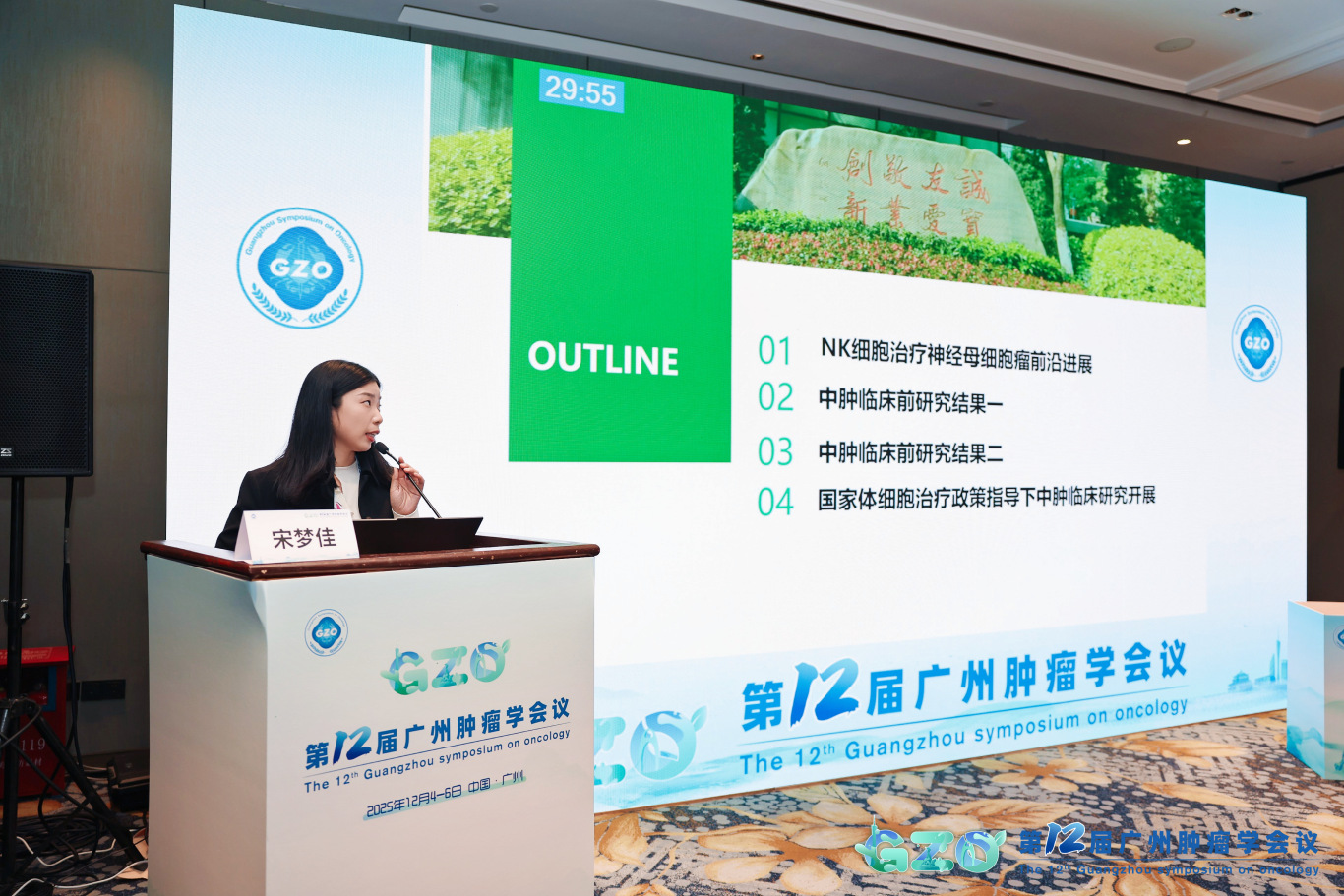 在12月6日下午举行的儿童肿瘤会场上,中山大学肿瘤防治中心张翼鷟教授团队宋梦佳副研究员分享了题为“践行国家体细胞治疗规范:神经母细胞瘤NK细胞疗法的临床前探索和临床实践”的专题报告。