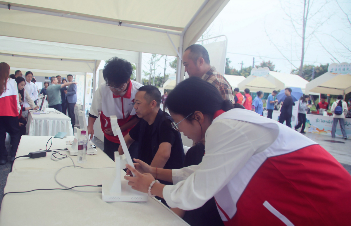 在“敏鹊——云脉健康AI管理系统”终端机前,围满了好奇的市民。赵女士按照指引将手放在设备上,短短30秒,包含体质辨识、健康评估、风险提示的报告便生成,工作人员在一旁细致讲解:“您的体质要注意祛湿,日常可以多吃些健脾的食物。”
