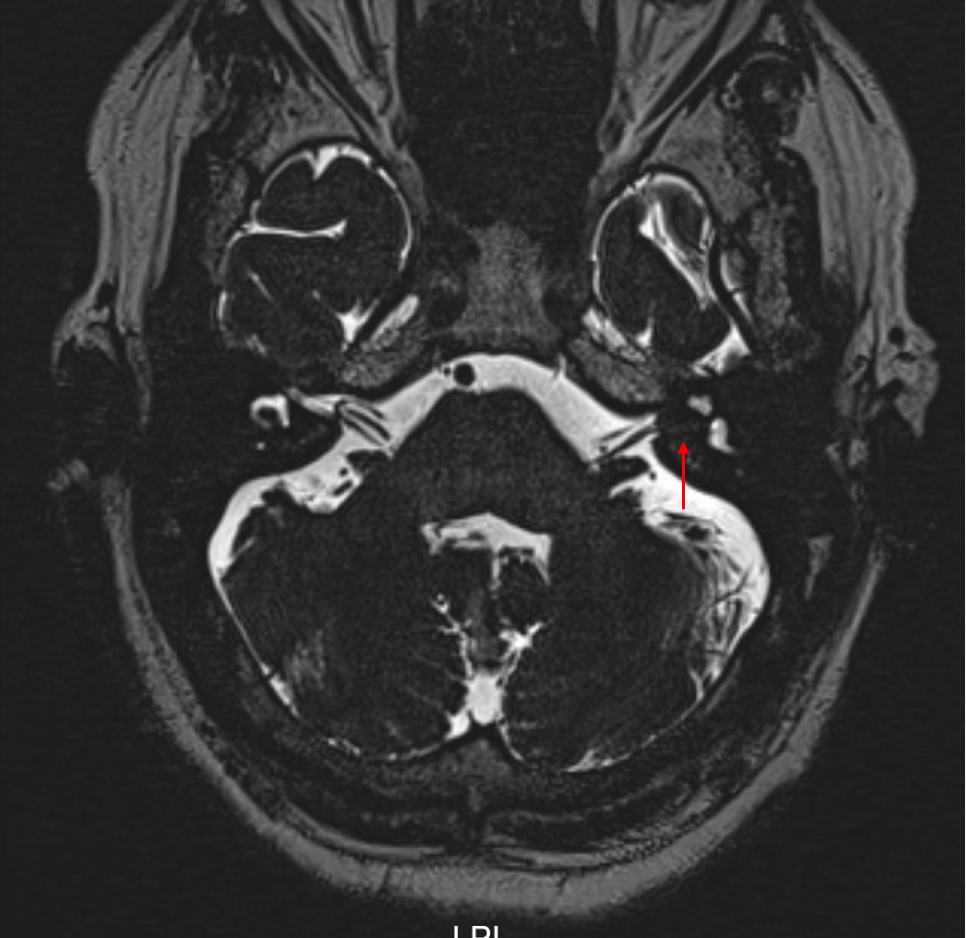 正是这次检查,发现他左侧内听道内,藏着一个约9×4mm的“东西”,影像学提示为左侧听神经瘤(前庭神经鞘瘤)。
