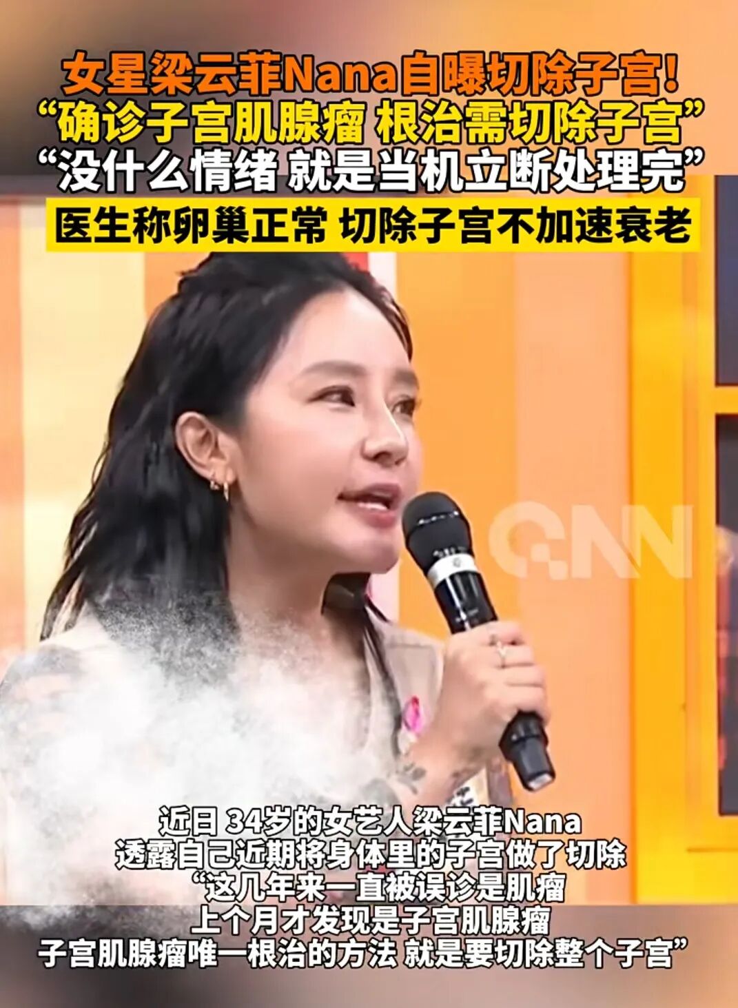 近日,34岁女艺人梁云菲(Nana)自曝多年受剧烈痛经、经期大出血困扰,最初被诊断为“子宫肌瘤”,经复查后确诊为“子宫肌腺瘤”,在保守治疗无效的情况下,无奈接受了子宫全切术。
