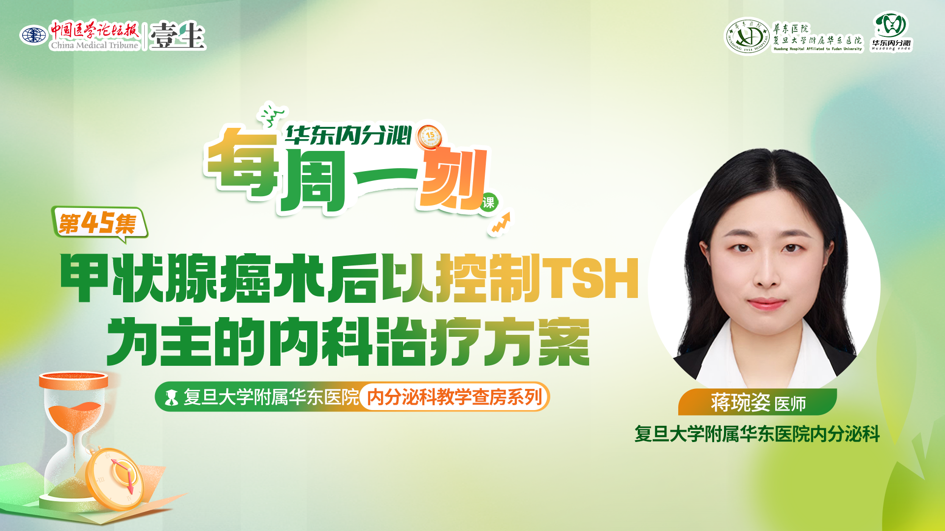 每周一『刻』·复旦大学附属华东医院内分泌科教学查房系列栏目第45期:甲状腺癌术后TSH控制目标主讲嘉宾:蒋琬姿 医师