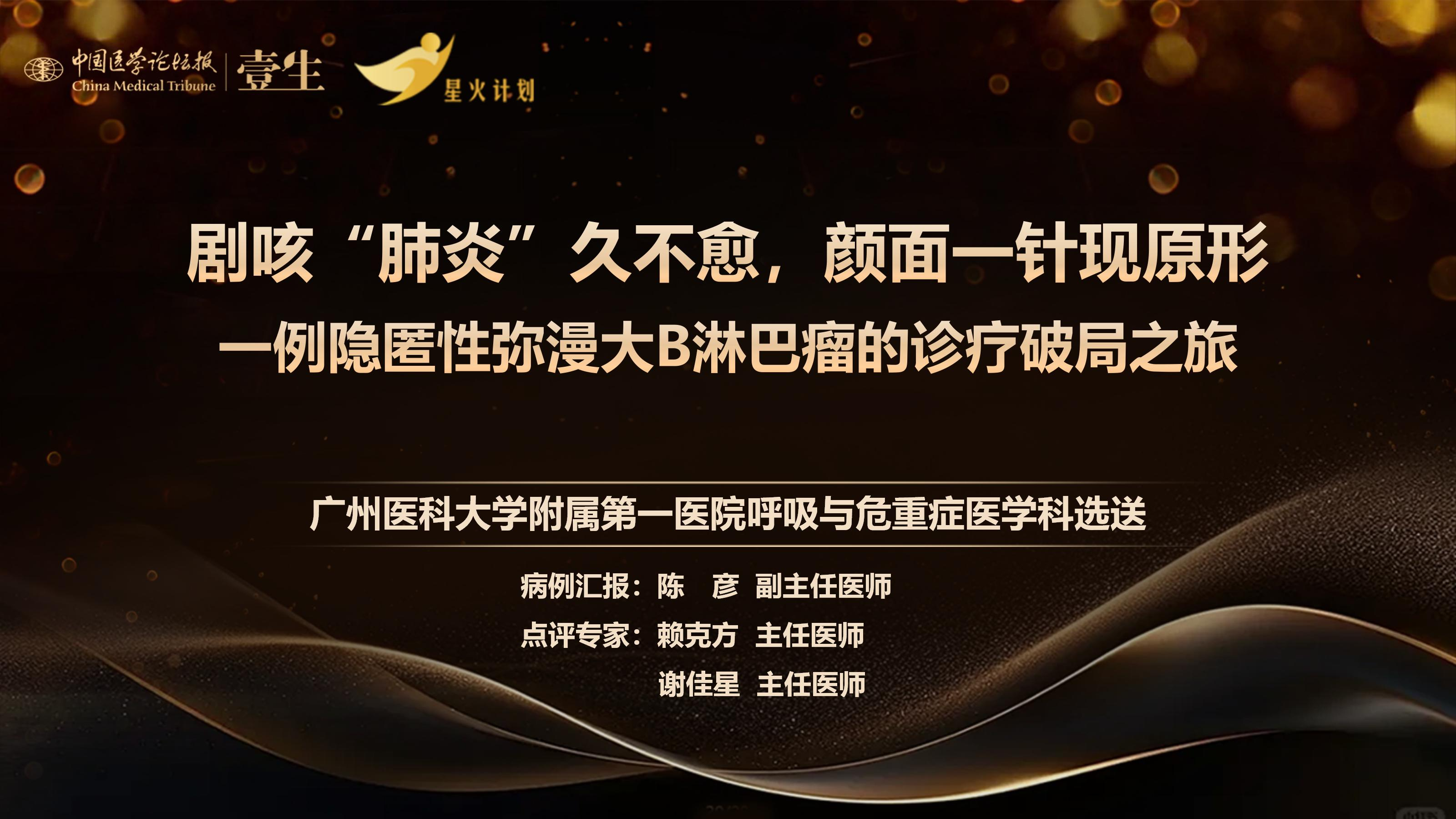 本病例由广州医科大学附属第一医院呼吸与危重症医学科选送。【病例汇报】陈彦 主治医师【点评专家】赖克方 主任医师谢佳星 主任医师